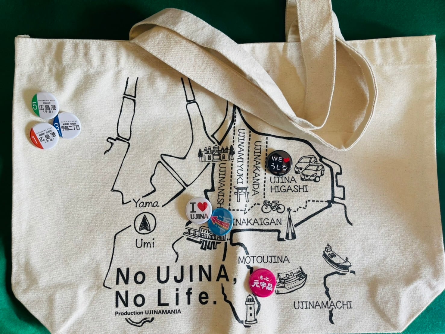 ※宇品トートMAPをお買い上げの方には「I♡UJINA」缶バッジが1個同封されます